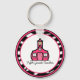 Cadena de teclas con el logo de La escuela rosa dentro de un marco de papel de cebra con guarnecido rosa. El texto dice "Maestra de quinto grado".