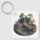 Un hermoso modelo de paisaje de fantasía china 3D con pabellones, lagos, caminos, montañas y la cadena de claves arbóreas.