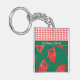 Un divertido anillo de claves cuadrado para personalizar, con estilo de campo, mezclar patrones de coincidencia de lindos dragones rojos sobre un fondo verde y gingham de cheque rojo y blanco.