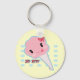 Cadena de llaves suave con la cara de golosinas de algodón esponjosas, Cotton Candy, escrita en Katakana japonesa. ^_^.