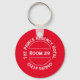Clic para un Hotel. Cadena de hoteles con número de habitación. Cláusula de la casa de huéspedes con número de habitación del hotel. Cadena de llaves de las habitaciones del hotel. El número de la habitación del hotel impreso en un anillo de llaves. Color rojo.