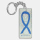 La cadena de claves de ángel de la cinta de sensibilización muestra el arte de una pintura de ángel de la conciencia azul. El lado del arte señala "Sensibilización sobre la educación" y el otro lado dice "Espero y apoyo a la toma de conciencia por la educación". ¡Añade tus propias palabras personalizados para el arte ángel personalizado y concientiza a los personalizados de las cadenas de claves de encanto! También se puede eliminar el texto de una cadena de claves sólo de ángel. Las cadenas de arte de la pintura de la cinta de ángel de la conciencia azul se pueden personalizar con mensajes personalizados para crear una gran conciencia que cause cadenas de arte clave para recaudadores de fondos, regalos de concientización u otros eventos especiales. Dé a este ángel el encanto de la cadena de claves de arte como regalo para cualquier ocasión.