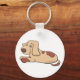 Un adorable cachorro feliz que es marrón con parches. Este diseño parece realmente efectivo en esta cadena de claves
