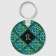 Una cadena de teclas redondeada monograma con un diseño de mosaico de diamante de color azul-verde celta repetido contra un fondo negro. ¡Personalízalo con tu capital inicial!
