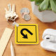 Icono de flecha en forma de U en signo en forma de diamante amarillo. Texto personalizado en la parte posterior.
