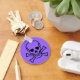El cráneo clásico y los huesos cruzados son tres veces. Fondo blanco y guarnecido negro y manija