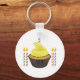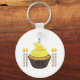 Un quequito amarillo con velas. Este diseño parece realmente efectivo en esta cadena de claves