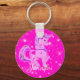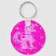 La cadena de teclas Cute Pink and Purple Stars and Hearts Unicorn presenta un Unicornio Rosa con corazones en un fondo estrella de diversos colores.