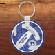 Llavero clave de voleibol blanco azul con nombre de equipo