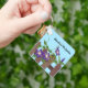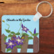 Vina clematis en el jardín con abeja y mariposa. Las clematias están subiendo a las alturas de este jardín. Que este diseño te haga sentir que estás logrando grandes cosas mientras usas este llavero.