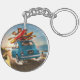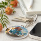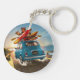 Golpear la carretera con encanto y estilo. Esta vibrante cadena de llaves cuenta con un coche Fiat azul que recorre a lo largo de una pintoresca carretera costera, cargado con equipo de vacaciones en el techo con canoas, remo y tumbonas, listos para la aventura. La alegre "CIAO" en la placa añade un toque italiano.