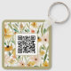 El logotipo de Flores Silvestres de color de agua rústico Código QR Las cadenas de claves corporativas presentan un modelo floral de acuarela moderna en naranja, rosa, azul y verde con el logotipo de su empresa personalizado en la parte delantera con su código QR personalizado al revés. Perfecto para regalos corporativos. Diseñado por ©2024 Evco Studio www.zazzle.com/store/evcostudio