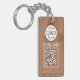 Una cadena de claves con estampado en madera de cerezo, diseñada para hacer los códigos de barras QR estéticamente agradables, sin perder funcionalidad. La cadena de claves tiene dos caras, con un campo de código QR diferente en cada lado. Cada lado tiene su propio subtítulo para un etiquetado claro. Enlazar a dos direcciones diferentes, como una para pago y otra para promoción, o simplemente usar el mismo enlace en ambos campos de código de barras QR (ambos lados de la cadena de claves) para facilitar su uso. Hay un lugar para añadir tu logotipo en la parte delantera y otro para información de contacto de negocios en la parte posterior.