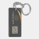 El moderno diseño personalizado de la cadena de claves en negro y oro incluye el logotipo de su empresa y el código QR personalizado. Añada el nombre/título y el logotipo de su empresa (foto u otro gráfico). Puede personalizar el tamaño del texto, la fuente y el color para que se adapten a sus preferencias personales. Ingresa una dirección URL para crear un código QR escaneado vinculado a tu sitio web, perfiles de medios sociales o cualquier otra plataforma.