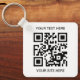Diseño de código QR promocional en blanco y negro. El estilo de fuente y el código QR se pueden personalizar. Crea tu propio llavero para tu pequeña empresa.