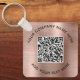 Simple y elegante llavero promocional para su negocio u organización con un fondo metálico subió de oro. Ingresa la URL de tu sitio web para crear un código QR escaneado y añadir dos líneas de texto personalizado, como el nombre de tu empresa, el lema, gracias o dejar en blanco.