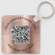 Simple y elegante llavero promocional para su negocio u organización con un fondo metálico rosa dorado falso cepillado. Ingrese la URL de su sitio web para crear un código QR escaneable y agregue dos líneas de texto personalizado, como el nombre de su empresa, eslogan, agradecimiento, o déjelo en blanco.