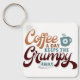A funny and sarcastic retro-style graphic showcases a steaming cup of coffee bursting with energy. The vibrant text reads, "Coffee a day keeps the grumpy away." This playful design is featured on a variety of products, making it a perfect gift for coffee enthusiasts.
