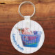 Mantenga la llave de la lavandería en una divertida cadena de llaves diseñada con una fotografía de una cesta azul llena de ropa colorida doblada en las perchas y una botella de detergente delante de una rústica madera blanca. Personalice el texto, quite el texto o haga clic en personalizar para seleccionar el estilo de fuente, el tamaño y el color que prefiera.