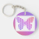 Llavero Colorida pintura de mariposa geométrica rosa púrpu