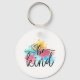 Esta tierna cadena de teclas presenta un caprichoso corazón y una colorida pintura salpicada de tonos azules, amarillos, rosas y verdes junto con un texto de moda que dice: sé amable.