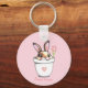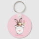 Llavero Conejo inteligente con flores y corazón en rosa cl