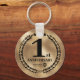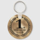 Faux gold Relieve metalizado 1er aniversario keychain con tu logo de negocio. Diseño conmemorativo con una rama de laurel y estrellas. El logotipo se puede cambiar para el texto haciendo clic en el botón para editar el diseño.