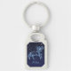 Cadena de claves con el símbolo zodiaco para Aries en azul plateado suave, cubierto con las estrellas de la constelación, contra un fondo estrellado del cielo clasificado de azul oscuro a negro.