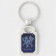 Cadena de claves con el símbolo zodiaco de Gemini en azul plateado suave, con las estrellas de la constelación, contra un fondo cielo estrellado clasificado de azul oscuro a negro.