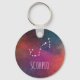 ¡Esta cadena de claves es genial para cualquier Scorpio! Cuenta con una galaxia nebulosa de racimo en rosa, azul y naranja. Encima está la constelación de Escorpio, junto con el texto "Escorpio". El texto se puede personalizar.