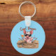 Piglet in sunglasses sitting in the mud with a cocktail and the slogan "Cool Bacon" on a blue background key ring.