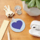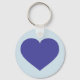 Este llavero presenta un corazón azul en un fondo azul claro.