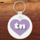 Este llavero presenta un corazón de lavanda fresco y con forma que contiene las letras fundas nítidas, blancas y redondeadas, tn, una abreviatura lúdica para Tennessee, el estado voluntario.