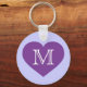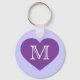 Este llavero presenta un corazón morado de forma que se ve cubierto por un primer monograma.