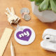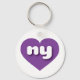 Este llavero cuenta con un corazón violeta vibrante que contiene las letras fundas negrita, blanca, redondeada y baja, una versión lúdica de la abreviatura del estado de Nueva York.