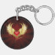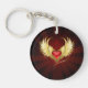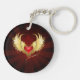 Corazón rojo brillante de un ángel con alas doradas brillando en el fondo rojo oscuro y radiante decorado con un patrón.