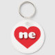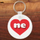 Esta cadena de claves presenta un corazón rojo vibrante que contiene las letras fundas negras, blancas y redondeadas, una abreviatura divertida para Nebraska, el estado de la cascarilla.