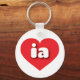 Esta cadena de claves cuenta con un corazón rojo vibrante que contiene las letras fundas más bajas redondeadas, blancas y negritas, una abreviatura divertida para Iowa, el estado ocular halcón.