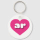 Este llavero presenta un vibrante corazón rosado caliente que contiene las letras fundas inferiores, redondeadas, blancas y negrita, una versión juguetona de la abreviatura del estado de Arkansas.