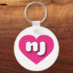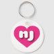 Este llavero presenta un corazón rosa vivo y vibrante que contiene las letras fundas nj, negrita, redondeadas y blancas, una versión divertida de la abreviatura del estado de Nueva Jersey.