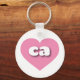 Esta cadena de claves presenta un corazón fresco rosado que contiene letras fundas bajas, redondeadas, blancas, ca, una versión lúdica de la abreviatura del estado de California.