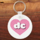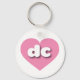 Esta cadena de claves presenta un corazón rosa claro y fresco que contiene las letras negrita, blanca, redondeada de funda inferior dc, una abreviatura juguetona para el Distrito de Columbia.