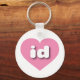 Esta cadena de claves cuenta con un vibrante corazón rosado que contiene el negrita, blanco, redondeado de las letras fundas inferiores, una abreviatura juguetona para Idaho, el estado de las gemas.