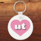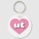 Este llavero cuenta con un vibrante corazón rosado que contiene las letras fundas audaces, blancas y redondeadas, pero una abreviatura divertida para Utah, el estado de la colmena.