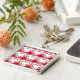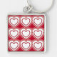 Keychain en un papel de pared de azulejos con corazones superpuestos en una moda industrial moderna, patrón abstracto - corazones blancos acentuados con rojo oscuro sobre un fondo rojo con lápiz labial profundo