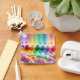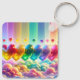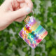 Este llavero tiene un diseño cardíaco arco iris.