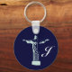 Diseño religioso azul gráfico de la estatua del Cristo Redentor - puede personalizarla fácilmente con sus iniciales de nombre o nombre de negocio