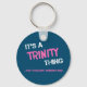 Es algo de Trinidad que no entenderías - tipografía de primer nombre con un brillante tipo de letra rosa caliente en pinceladas pintadas y letras con estilo esténcil.