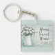 Carry a little farmhouse charm wherever you go with this cotton flowers rustic keychain. Featuring a vintage white pitcher filled with soft cotton stems against a rustic teal wood background, this design adds cozy cottage style to your keys, purse, backpack, or travel bag.