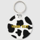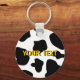 Cow spots pattern keychain | Funny farm animal print. Cute gift idea for cowboys, cowgirls and cow lovers. Personalizable cowhide with your name or quote. Blochy black and white cow hide design.